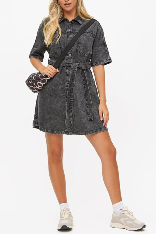 Ex TU Grey Acid Wash Denim Oversized Shirt Dress