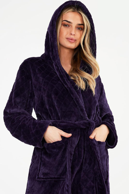Ladies City Comfort Soft Fleece Deep Purple Dressing Gown