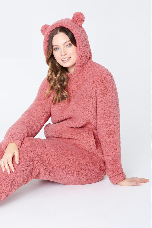 Ladies CityComfort 2-Piece Teddy Fleece Pyjama Set Dusky Pink