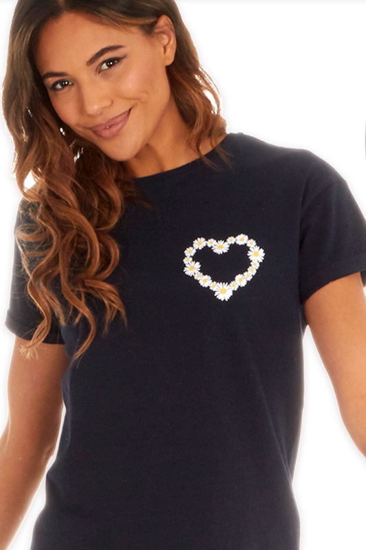 Ladies Jersey Cotton Short Sleeve Cropped Pyjamas Floral Heart