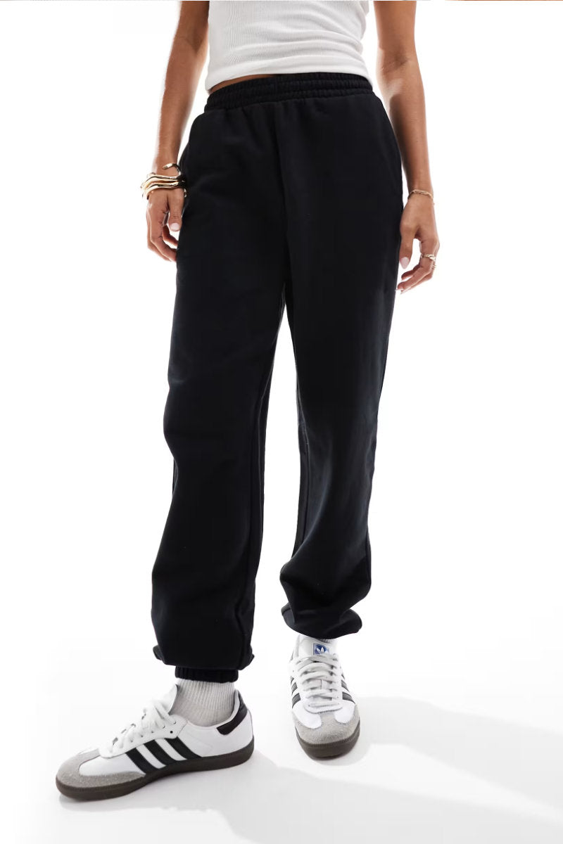 Refresh your off-duty wardrobe with these plain black joggers. Featuring an elasticated waist and cuffs, this pair delivers all-day comfort without compromising on style. Team them with a white T-shirt, black hoodie, and trainers for an effortlessly cool, laid-back look.