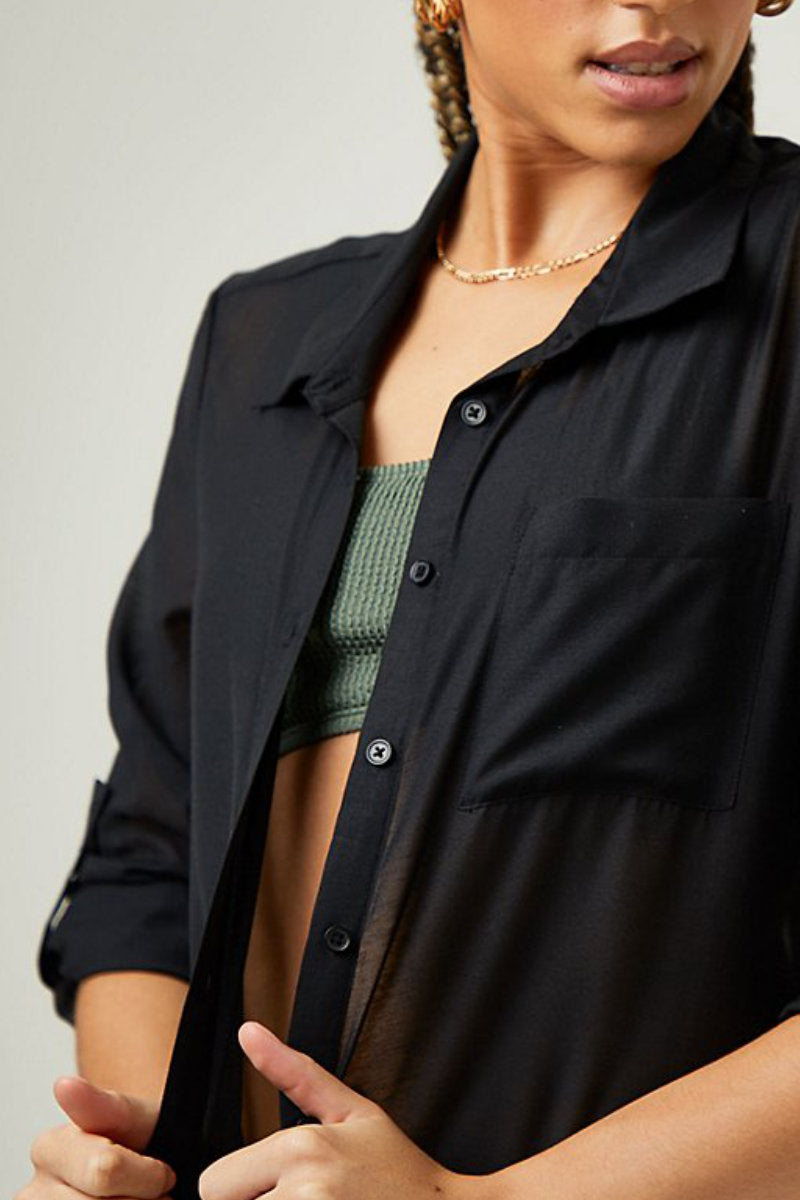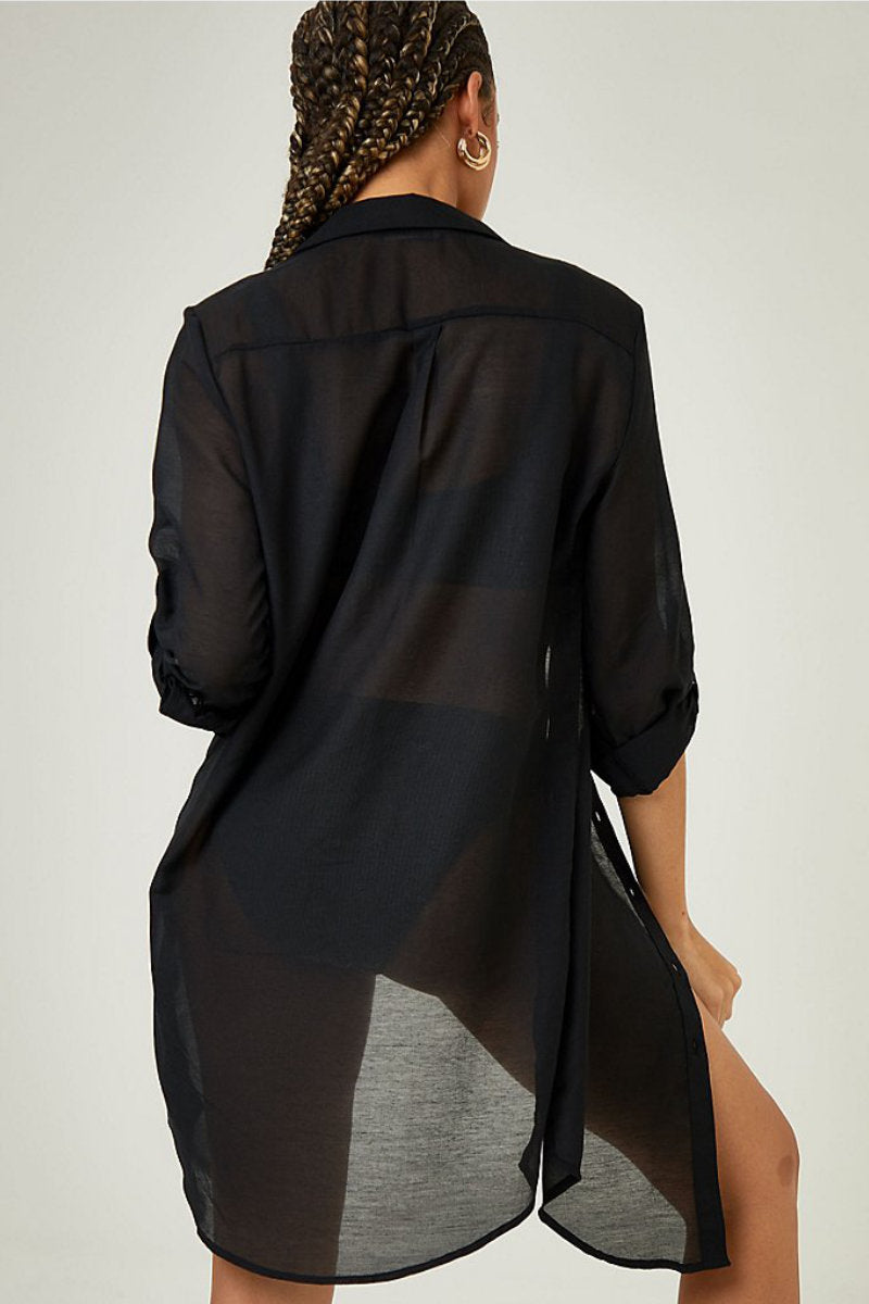 Lightweight, breathable and effortlessly chic, this Black Shirt Dress Beach Cover Up is your perfect holiday essential. Crafted from 100% cotton, this sheer shirt-style cover up is designed to layer beautifully over swimwear, making the transition from beach to bar seamless.