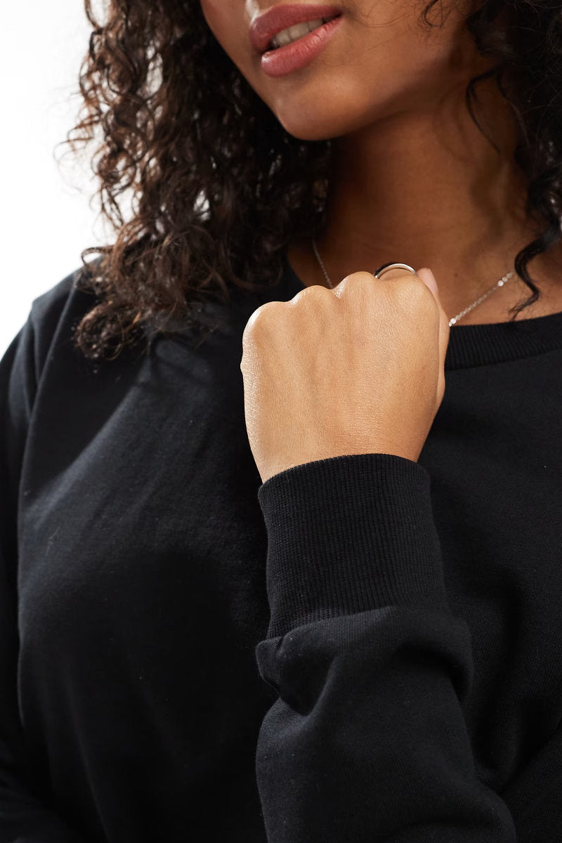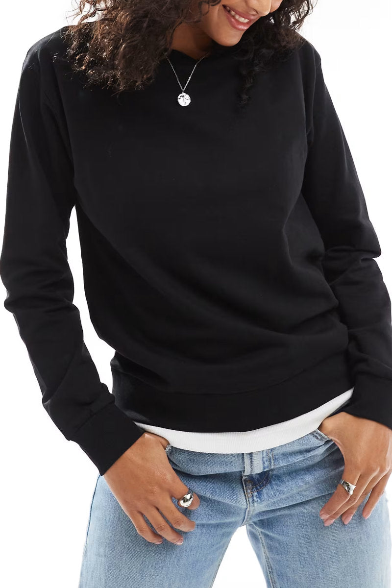 Embrace laid-back comfort with this Black Sweatshirt, a perfect go-to for casual days or impromptu get-togethers. Crafted in a longline, regular fit, it features a timeless crew neck and ribbed trims for a classic finishing touch. Soft sweatshirt fabric keeps you warm and cosy, making this versatile piece an easy wardrobe staple that blends both classic and contemporary style.