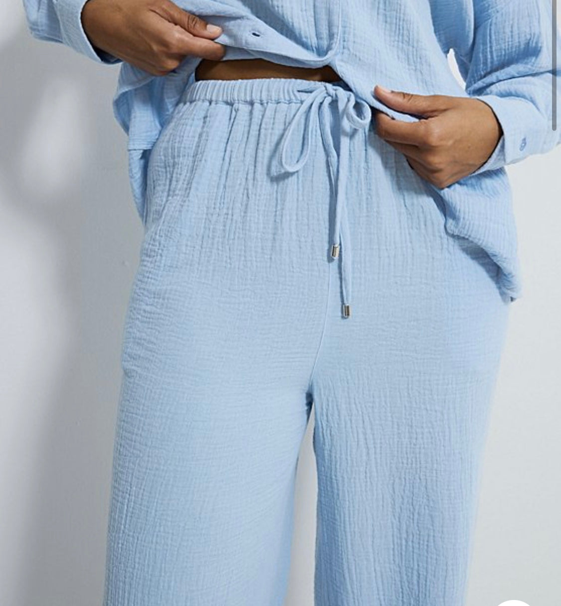 Elevate your look with our comfy 100% cotton wide leg trousers. Ideal for any season, these trendy pants will keep you stylish and relaxed all day!