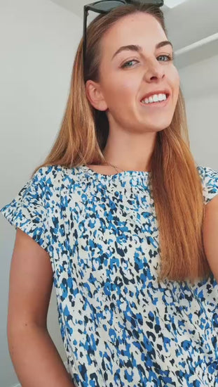 A casual wardrobe staple with a fresh twist, this Blue Splash Print Top from ex-M&Co adds a playful pop of colour to your everyday outfits. Featuring an easy-to-wear shape and abstract print, it’s perfect for pairing with your favourite jeans or shorts.