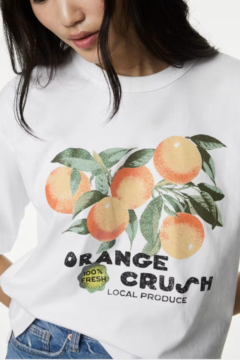 Ex M&S Pure Cotton Orange Crush Printed Oversized T-Shirt