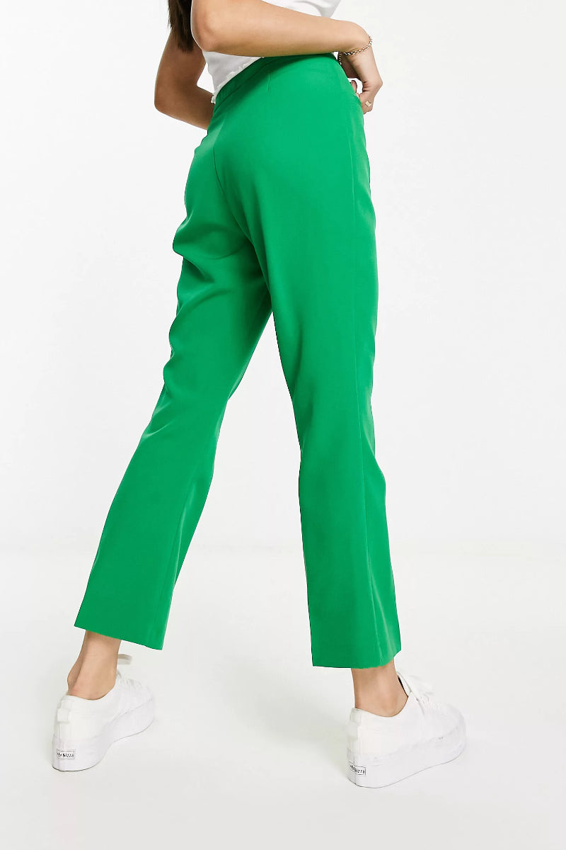 Delight with day-to-night looks that are both casual and glamorous. Dress to impress and combine natural femininity and an impressive attention to detail, you can easily solve the daily what-to-wear dilemma with these Miss Selfridge cropped flare trousers in Green.