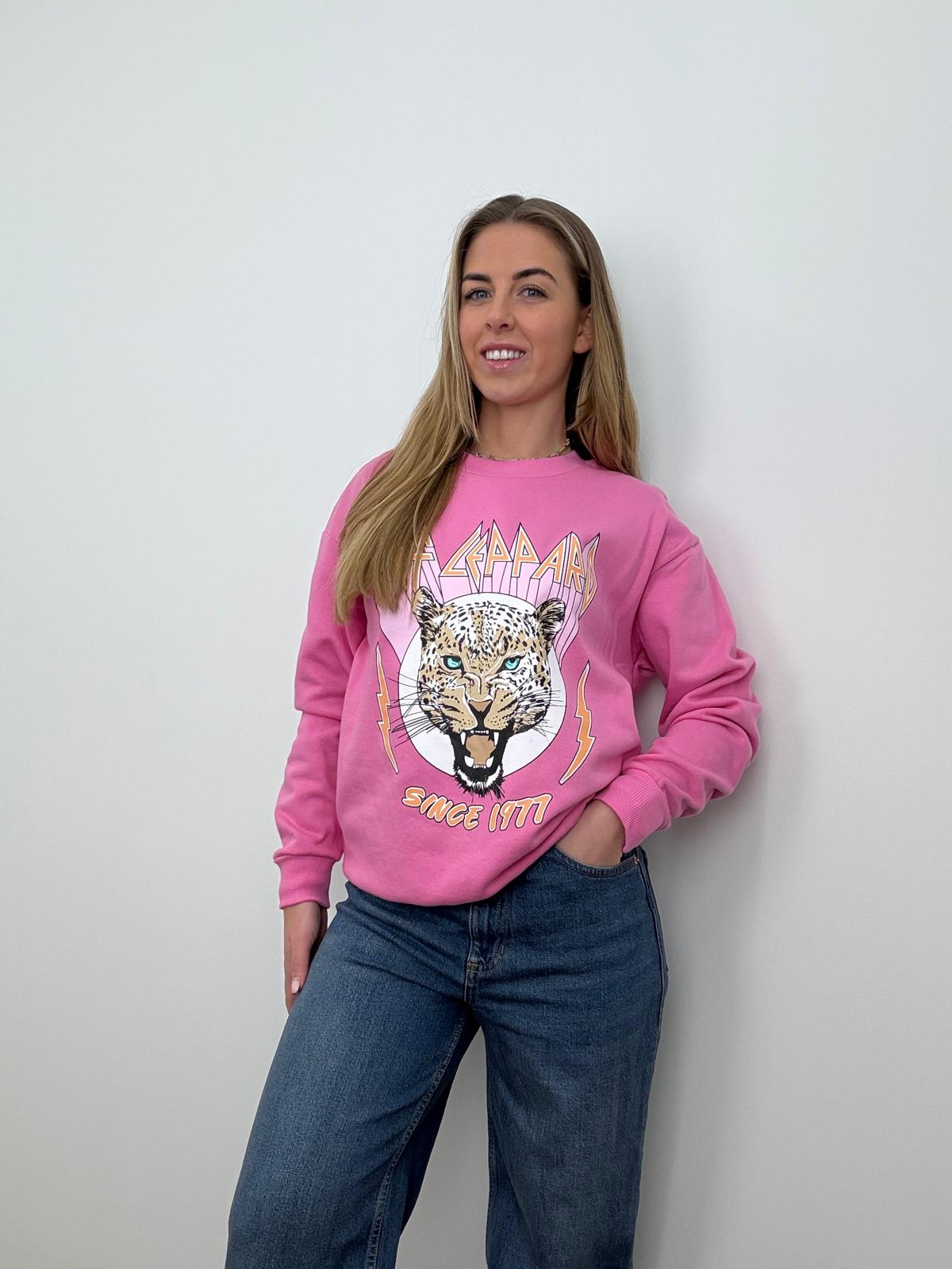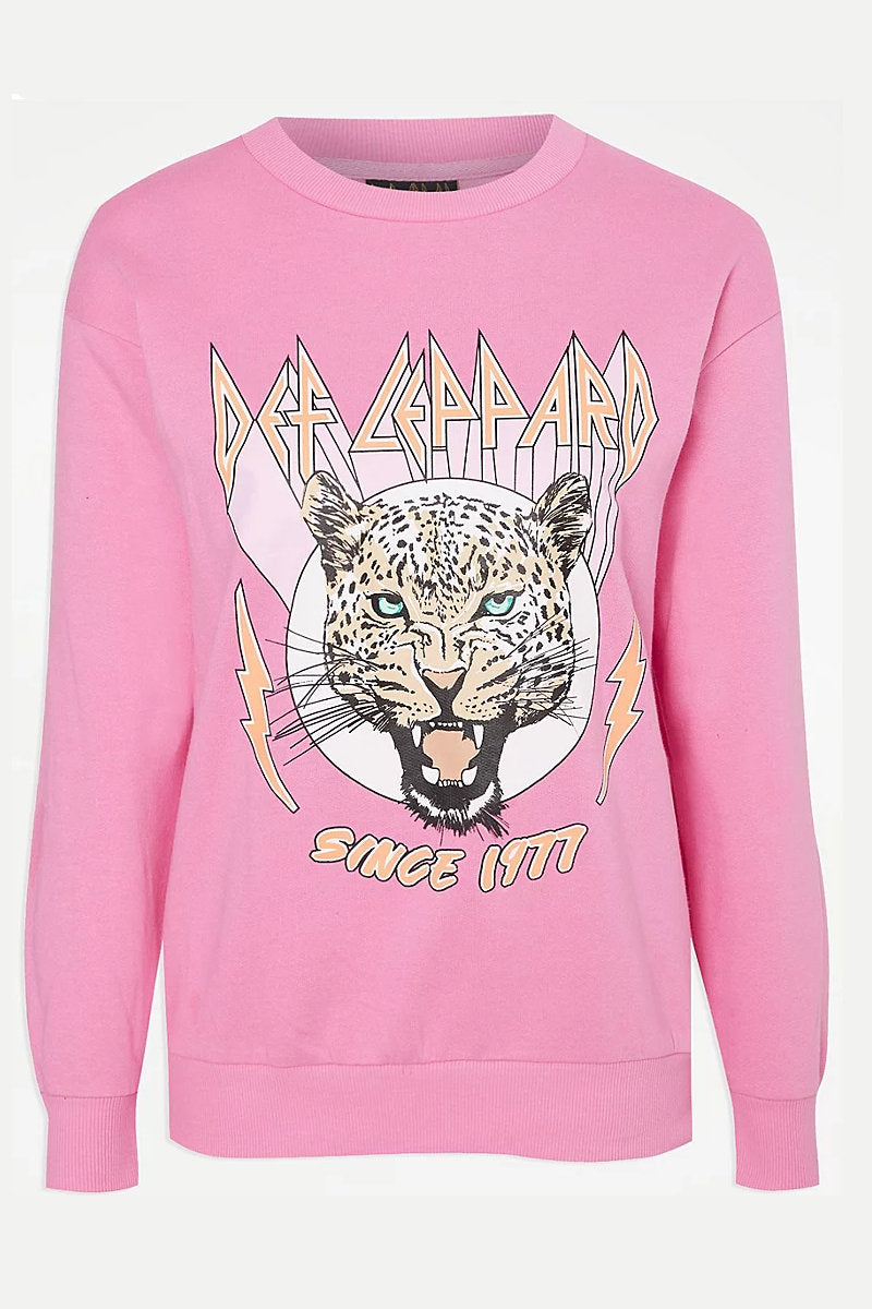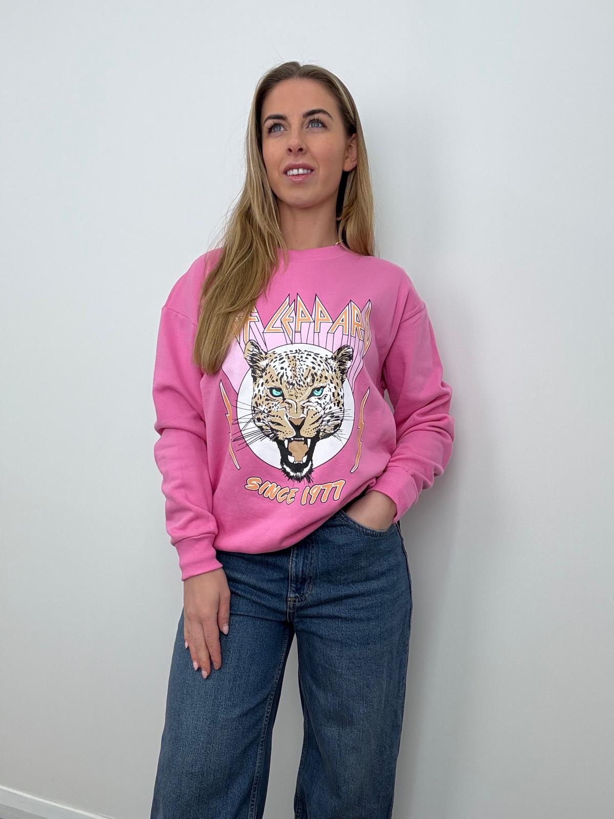 Add a rock-chic edge to your casual wardrobe with this Def Leppard Pink Sweatshirt. Designed in a relaxed fit, it features a bold leopard graphic and ‘Def Leppard Since 1977’ slogan for a statement finish. The crew neckline and ribbed trims ensure a classic look, while the soft jersey fabric provides all-day comfort. Style yours with flared jeans and trainers for a laid-back weekend ensemble.