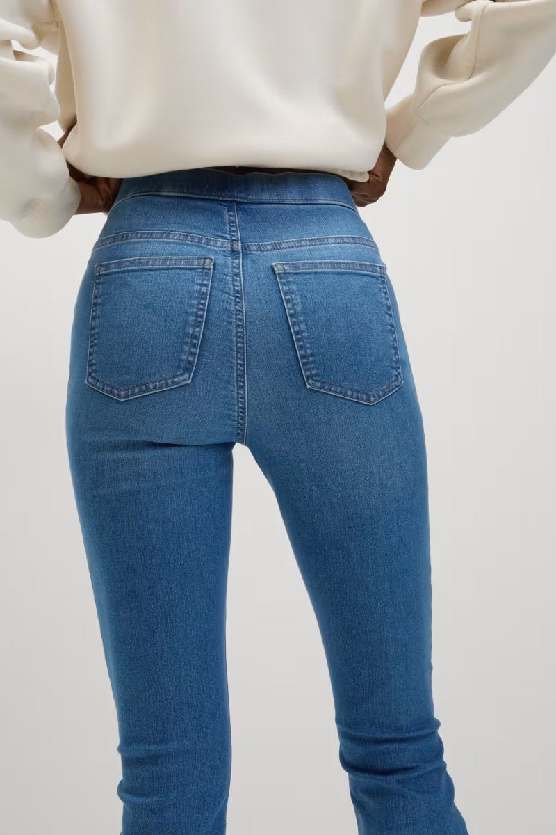 Enjoy the look of jeans with the comfort of leggings in these versatile Mid Wash Pull-On Jeggings. Crafted from a soft, stretchy fabric, they feature a flattering skinny fit that complements your silhouette and a convenient pull-on design for fuss-free dressing. With two functional back pockets and two mock front pockets, these jeggings are an easy go-to for relaxed weekends or casual outings.