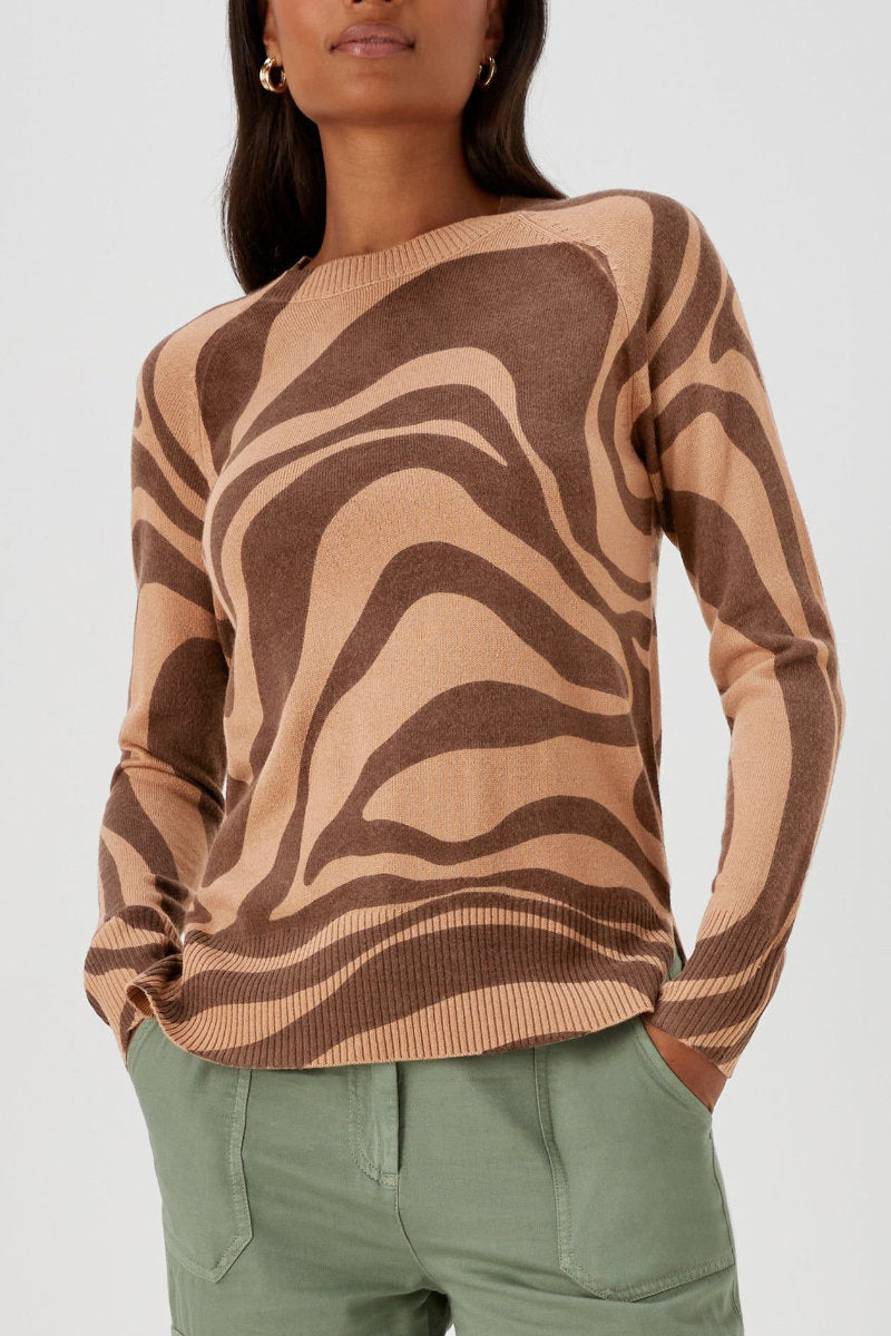 Famous Store Swirl Print Jumper in Brown