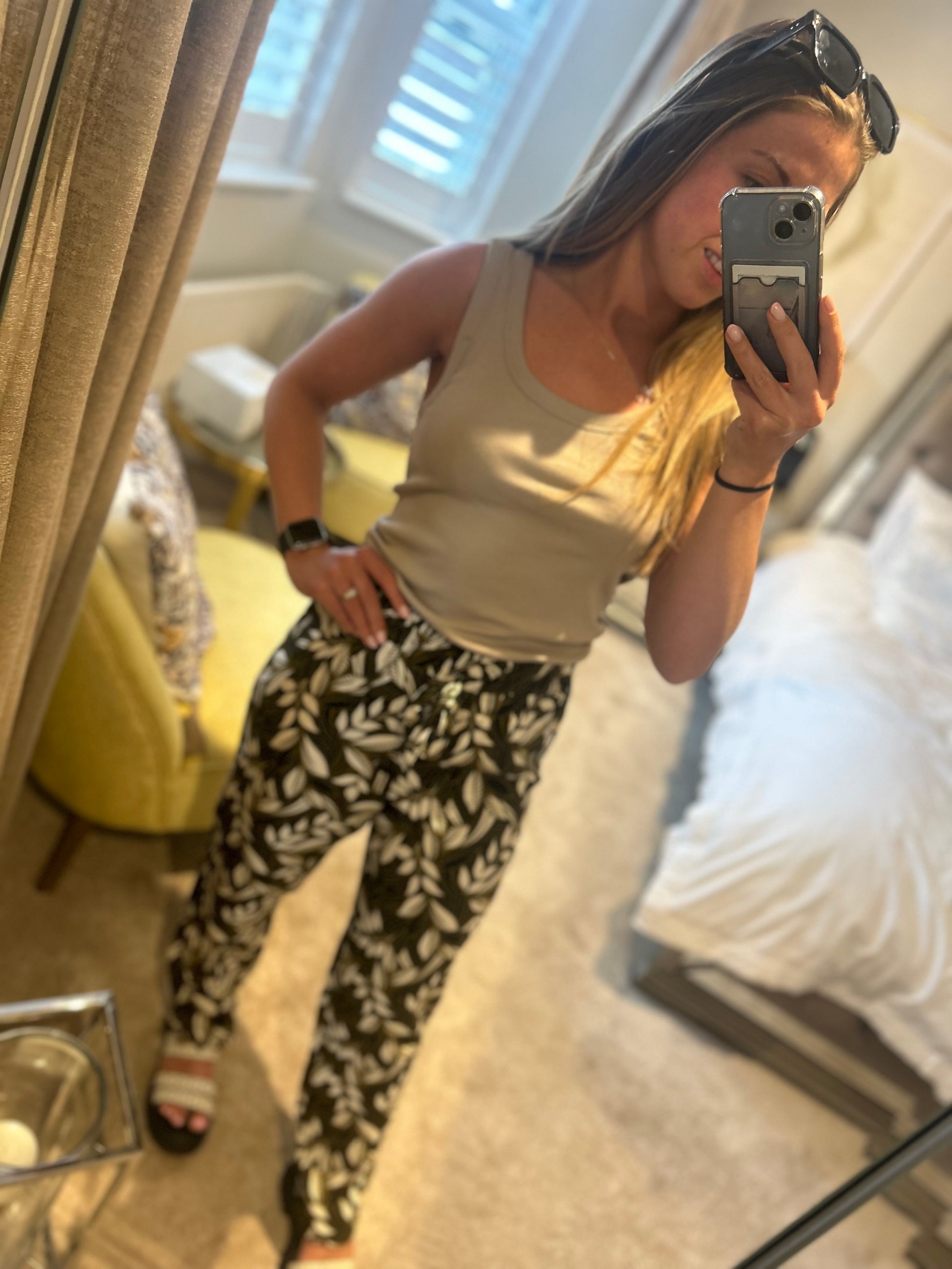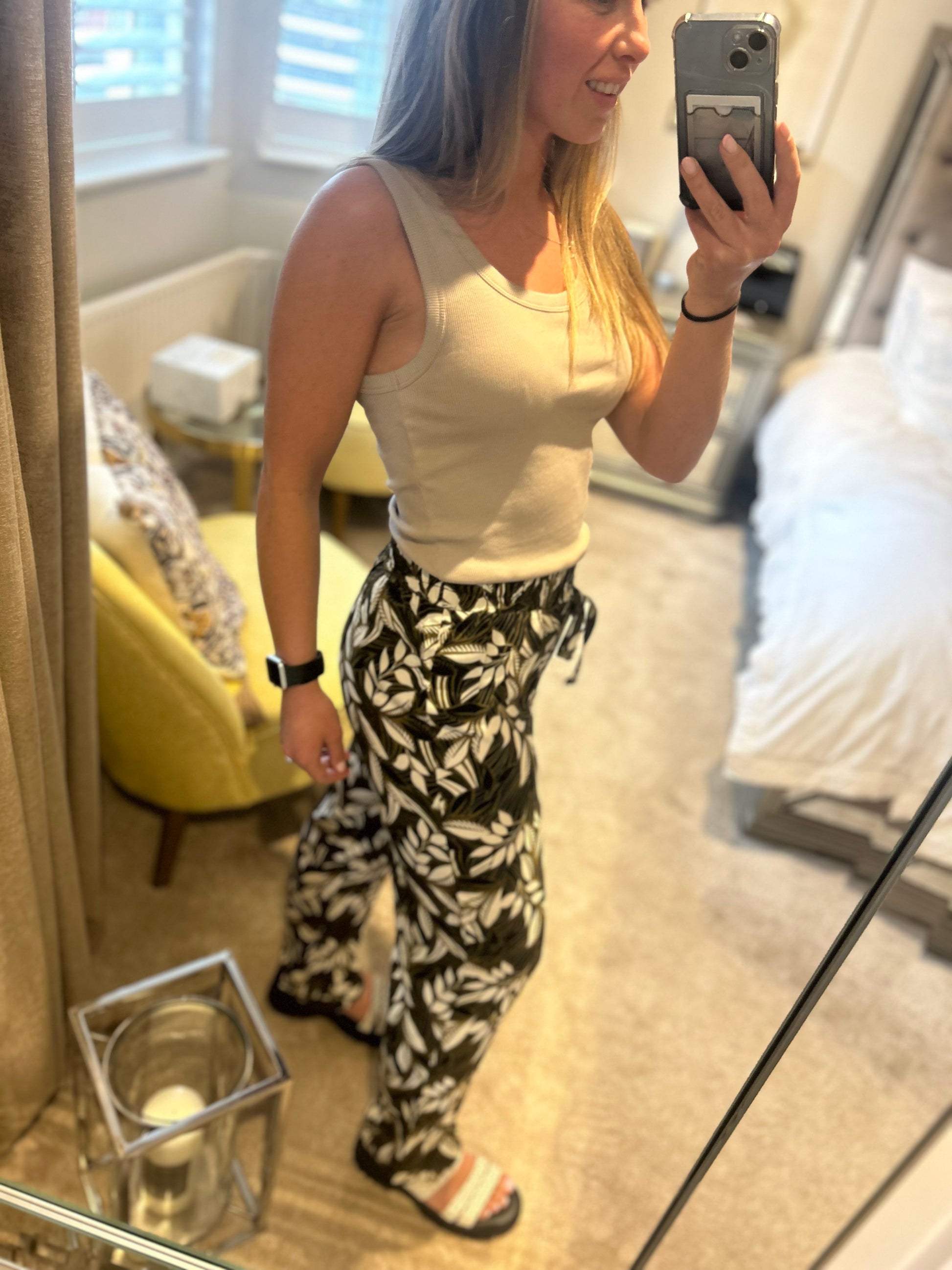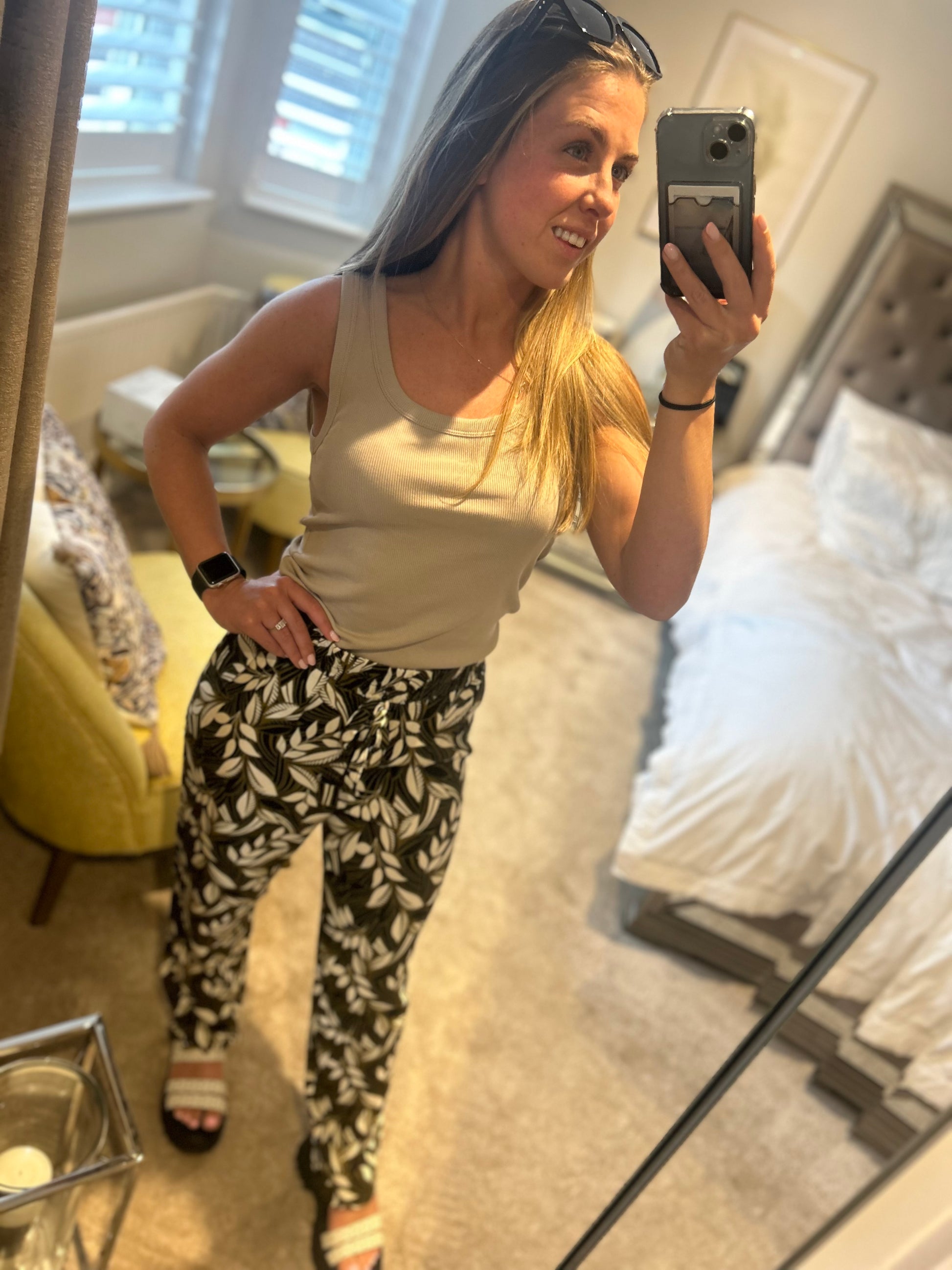 With their pretty print and trending colourway, these green floral trousers are a must for your wardrobe.