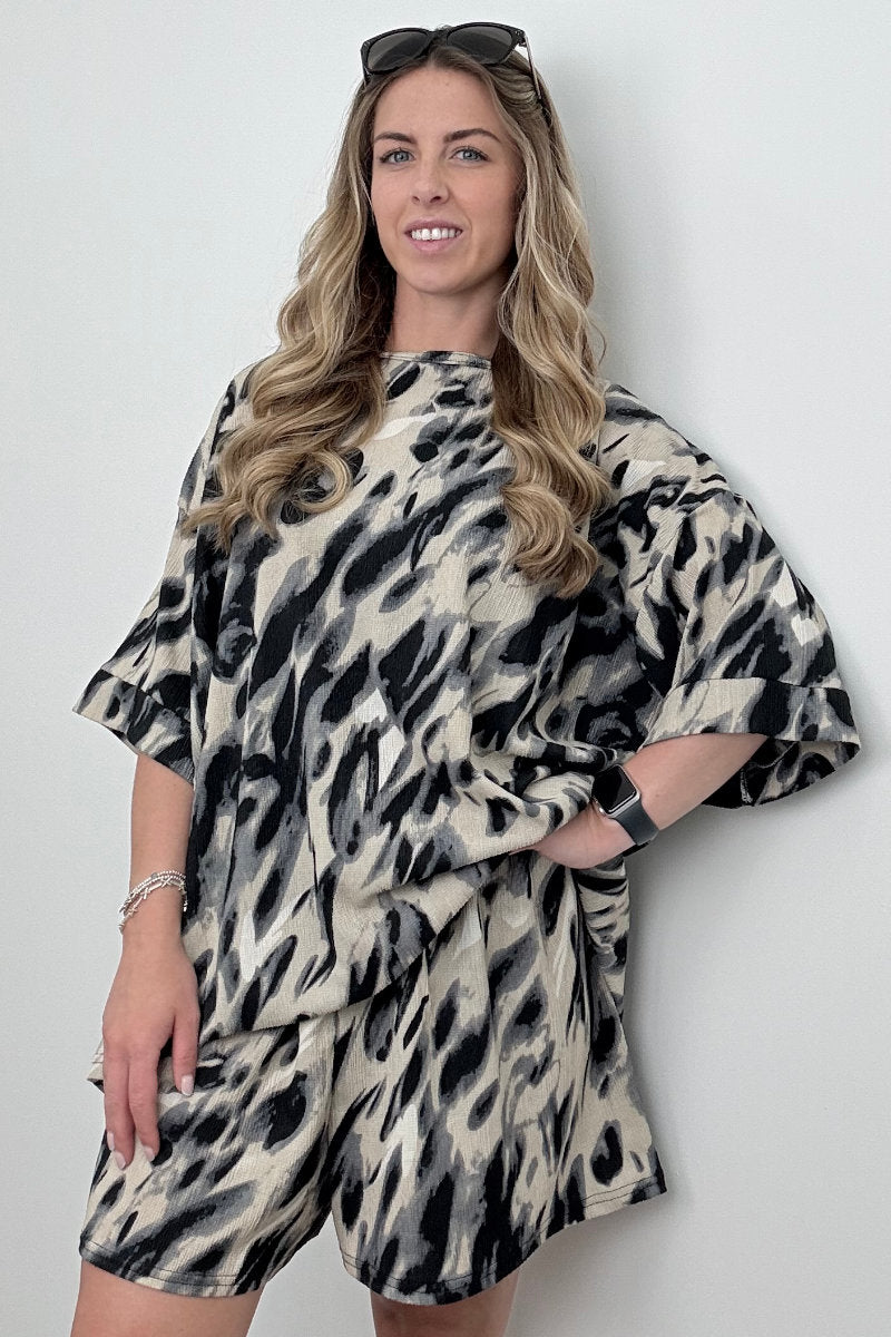 Grey & Cream Animal Print Shorts