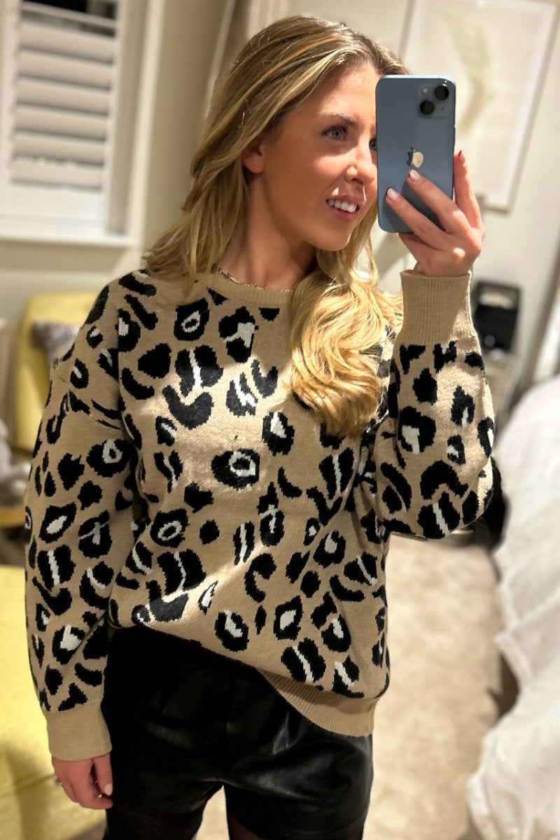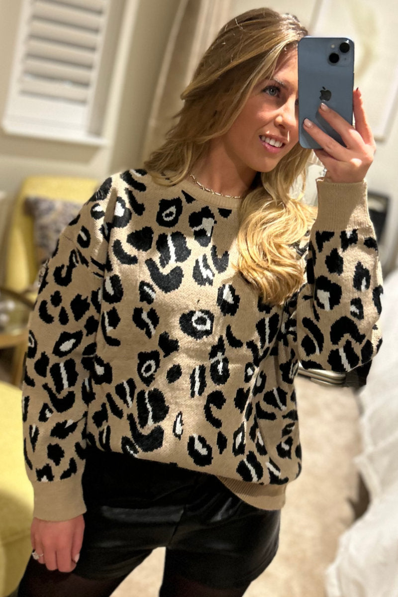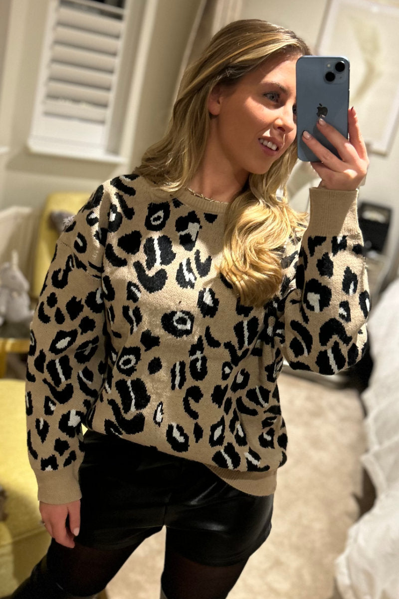Step into style with this Italian animal print jumper, combining bold leopard patterns with a cosy knit for an effortlessly chic look. Perfect for casual outings or laid-back evenings, this jumper brings a touch of wild sophistication to your wardrobe.