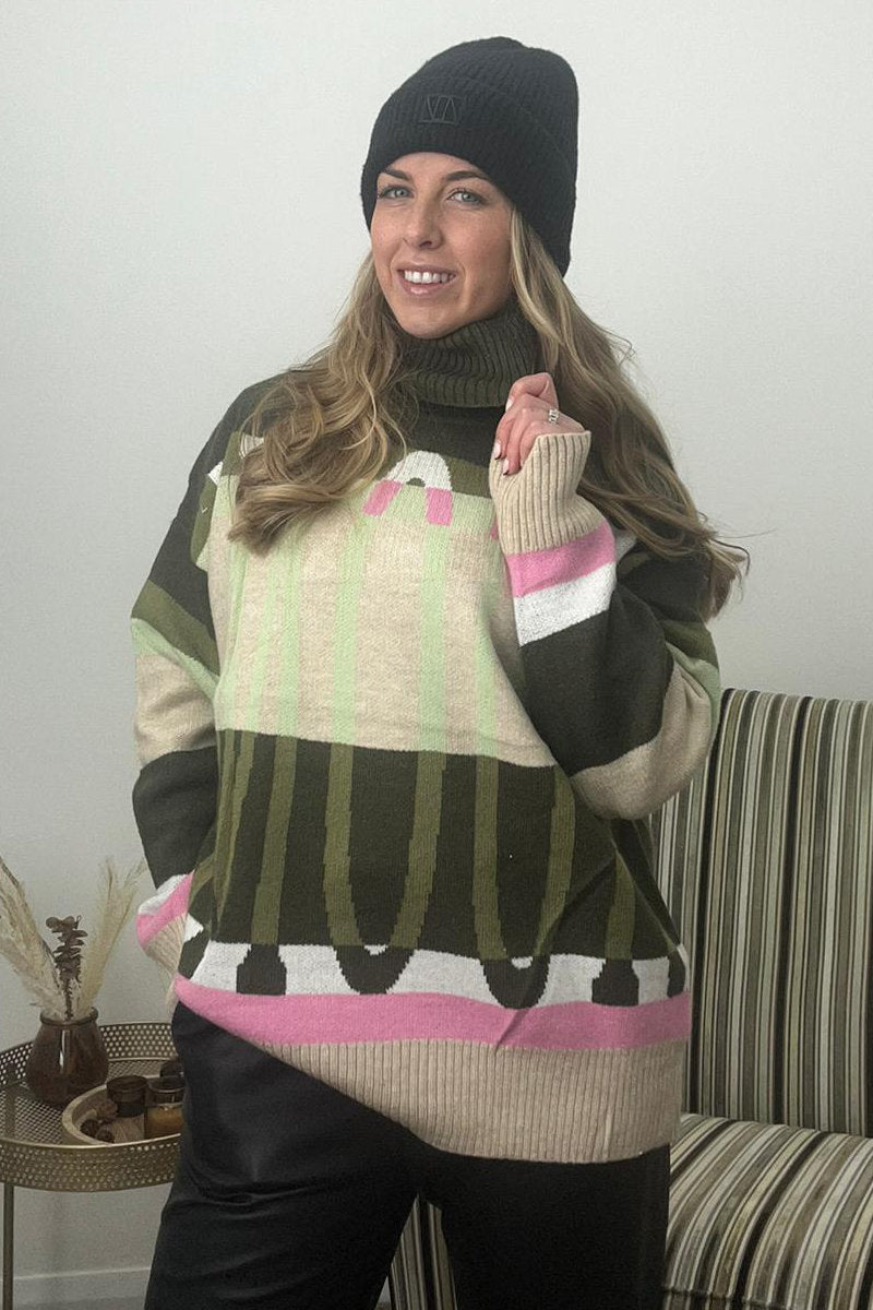 Ladies Amour Design Roll-Neck Knit Jumper Green