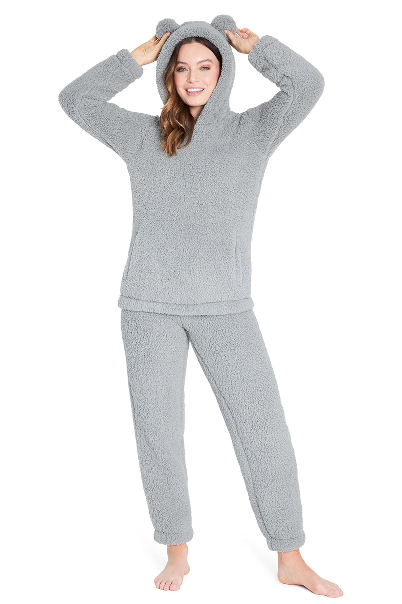 Ladies CityComfort 2-Piece Teddy Fleece Pyjama Set Grey