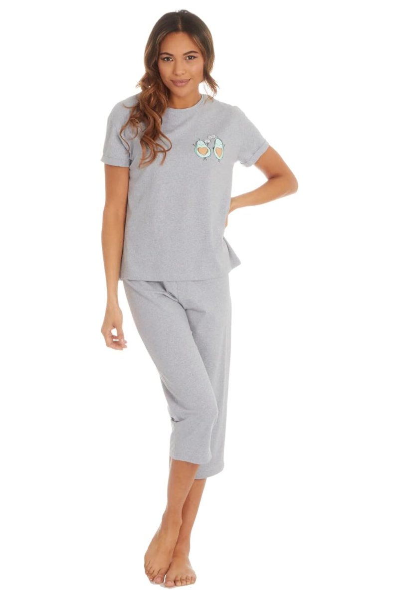 Ladies Jersey Cotton Short Sleeve Cropped Pyjamas Avocado