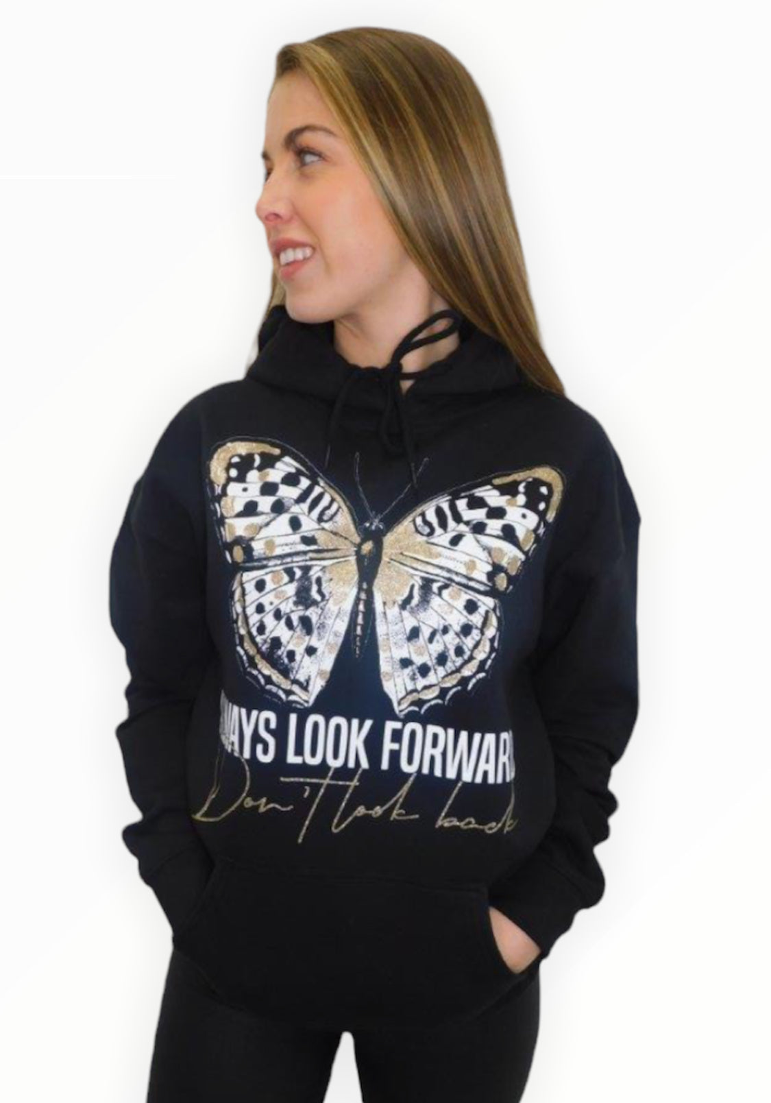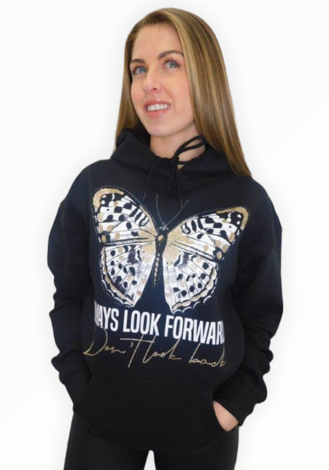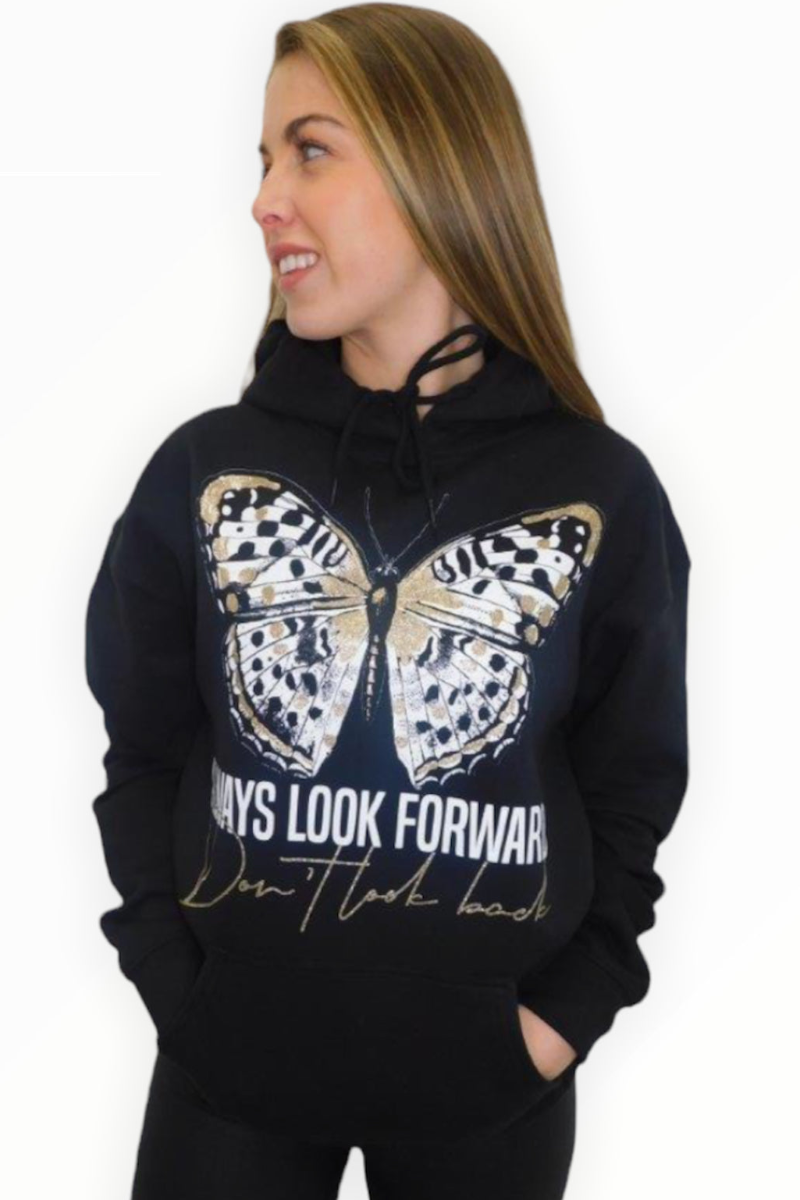 We are loving this hoodie, with its delicate butterfly print and a hint of gold makes you stand out in a crowd.