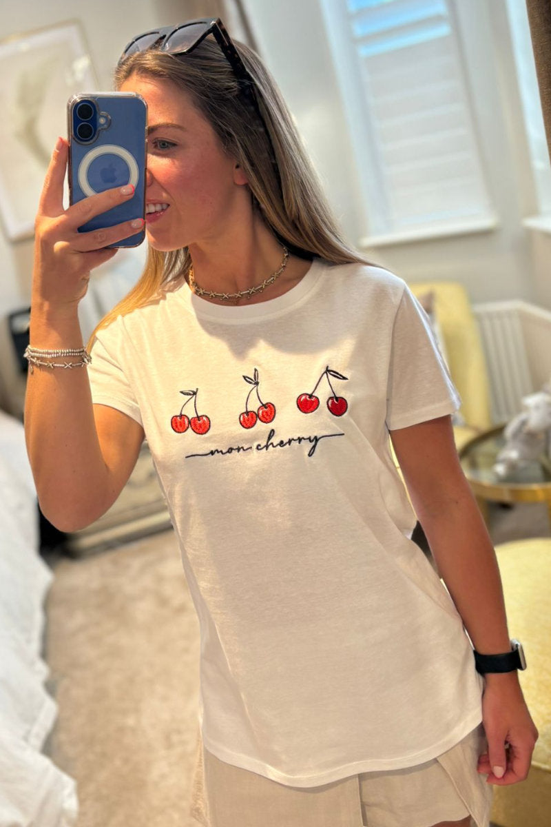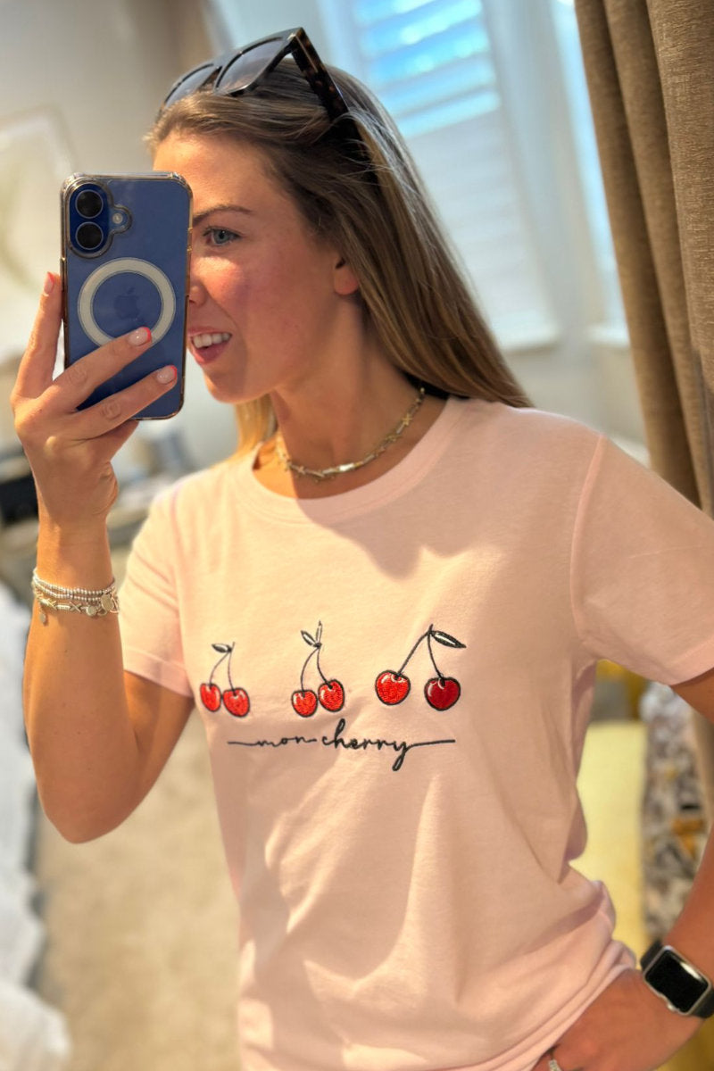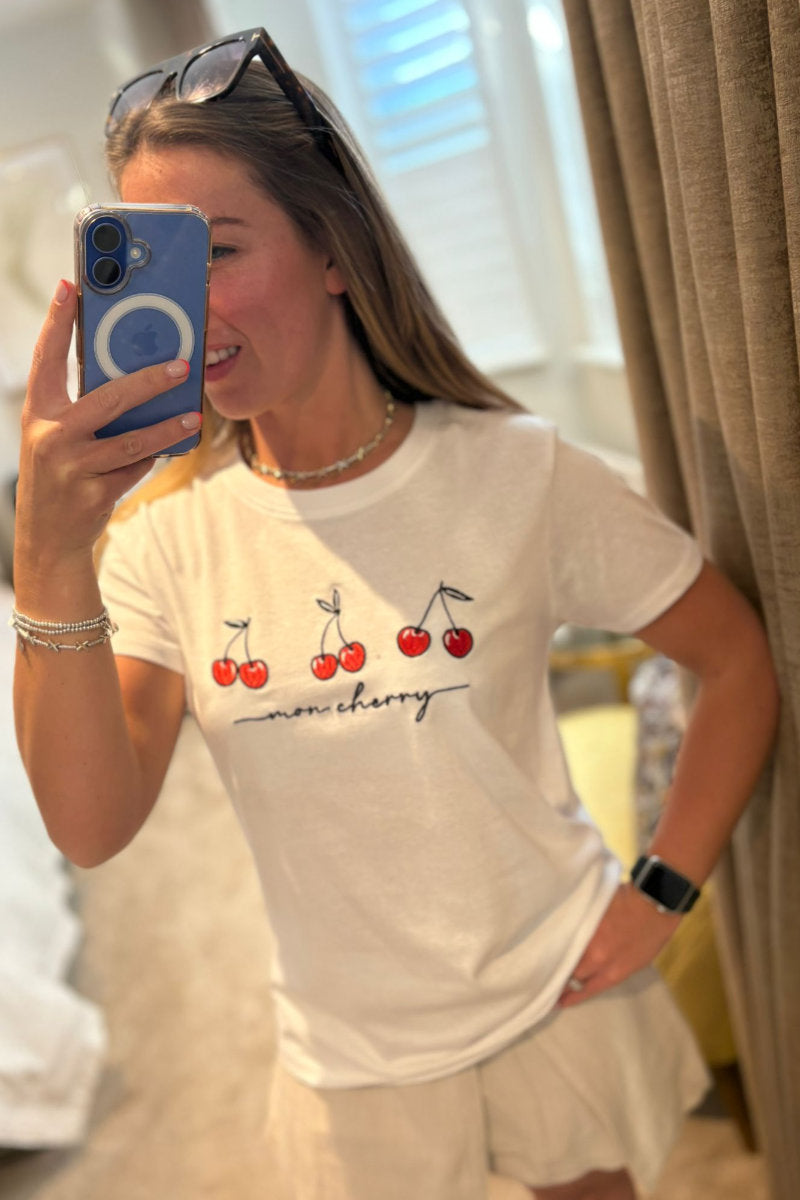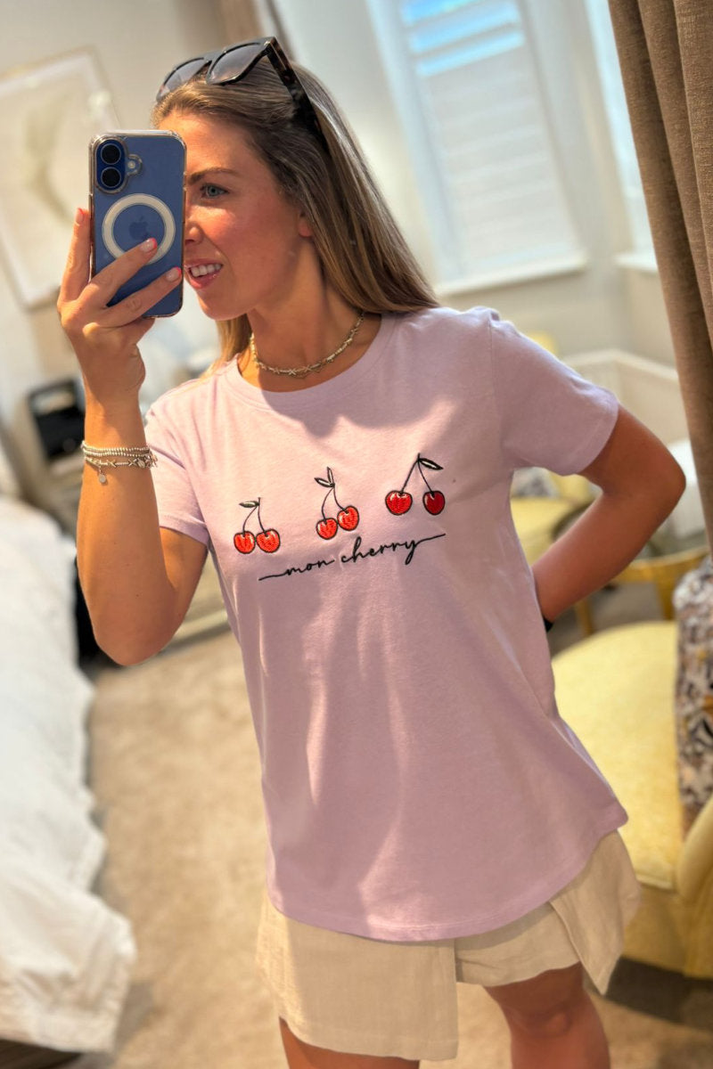 This playful Paramour tee adds a sweet twist to everyday style with its charming cherry print and handwritten "mon cherry" script. Made from soft, breathable cotton, it delivers all-day comfort with a relaxed fit that’s ideal for casual days and sunny strolls. Pair it with denim or shorts for an effortlessly cute look.