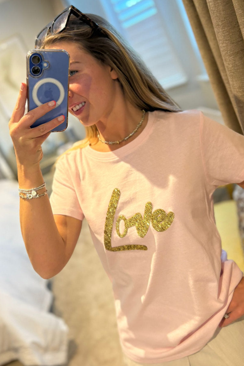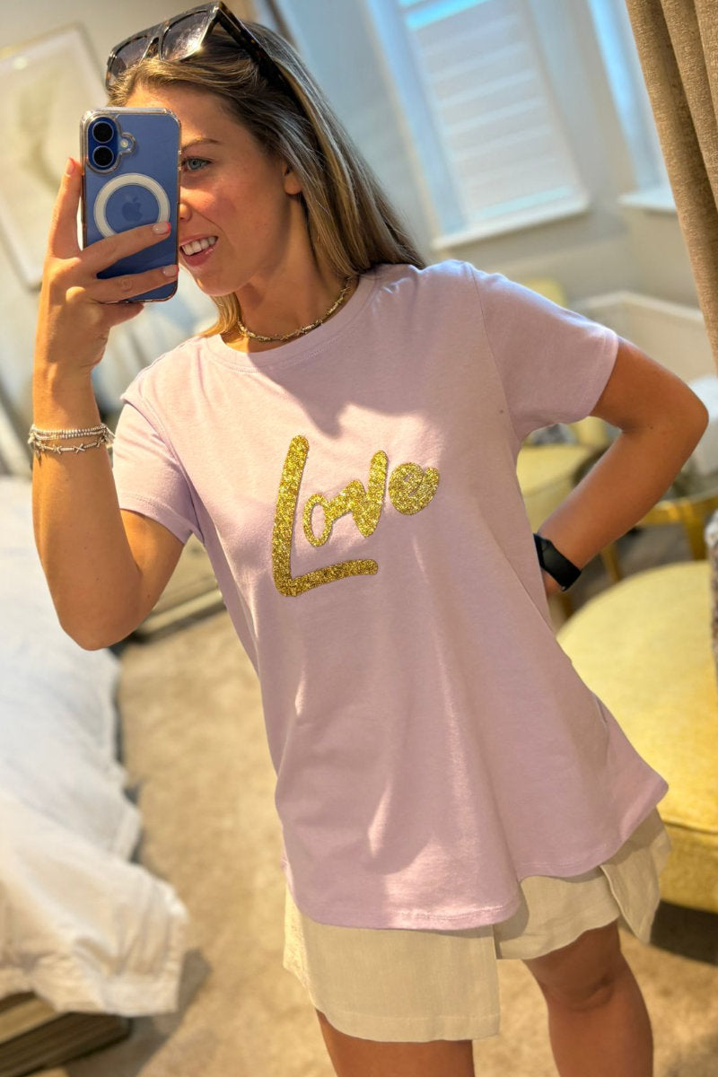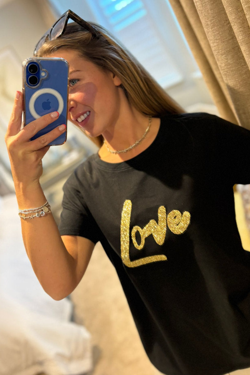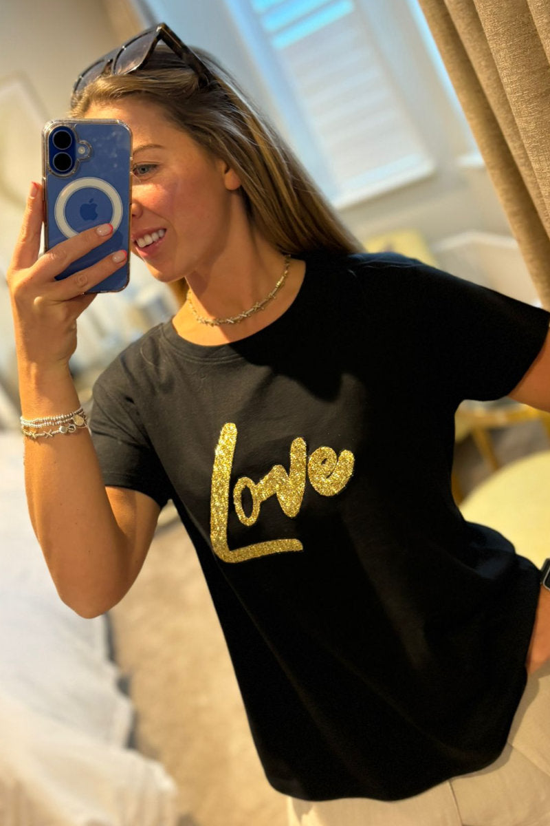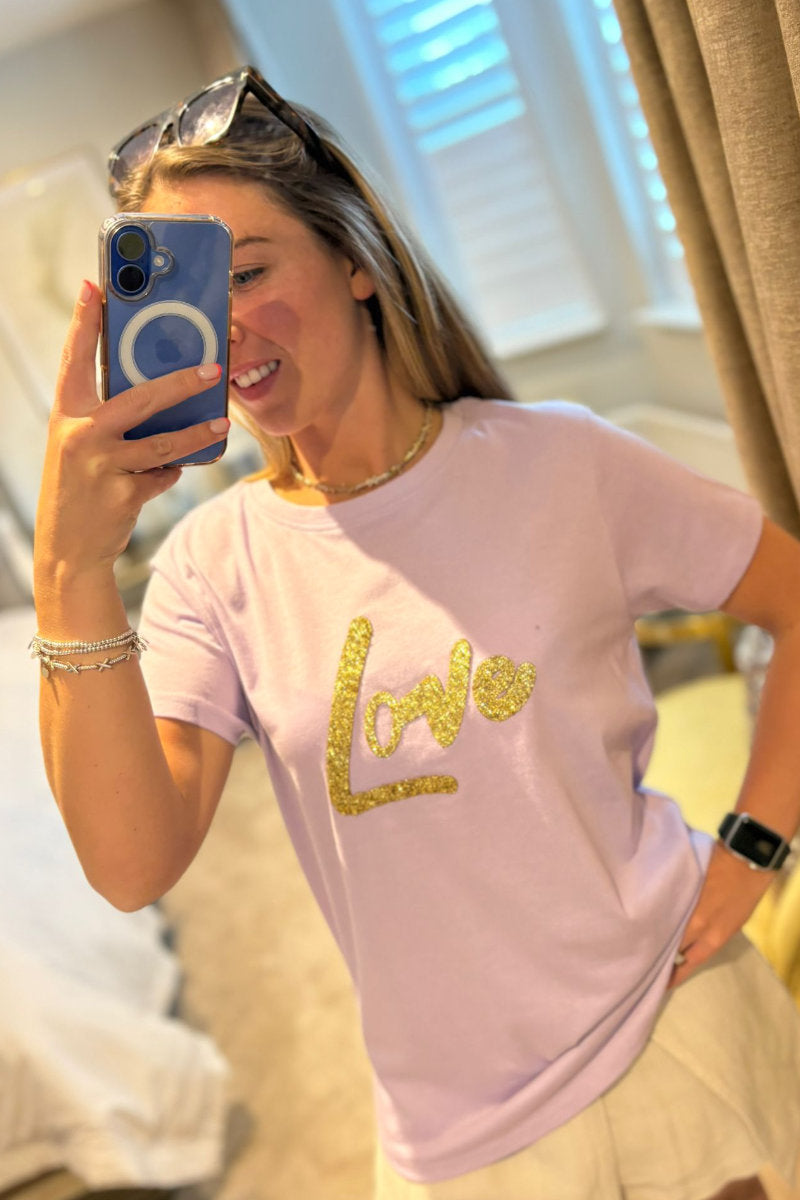 Say it with shimmer. This Paramour tee spells out ‘Love’ in dazzling gold glitter, combining playful design with a soft cotton feel for everyday cool.
