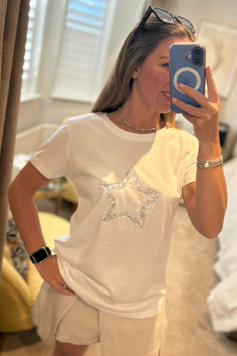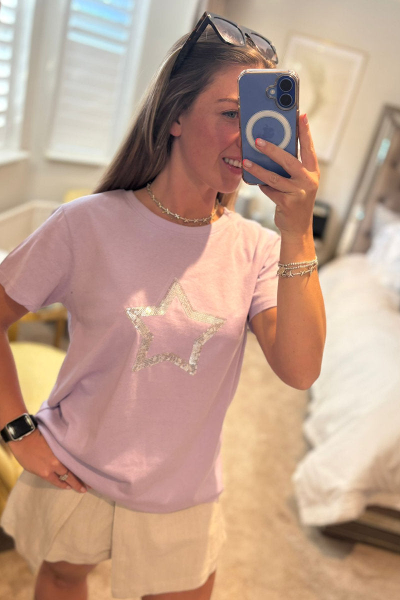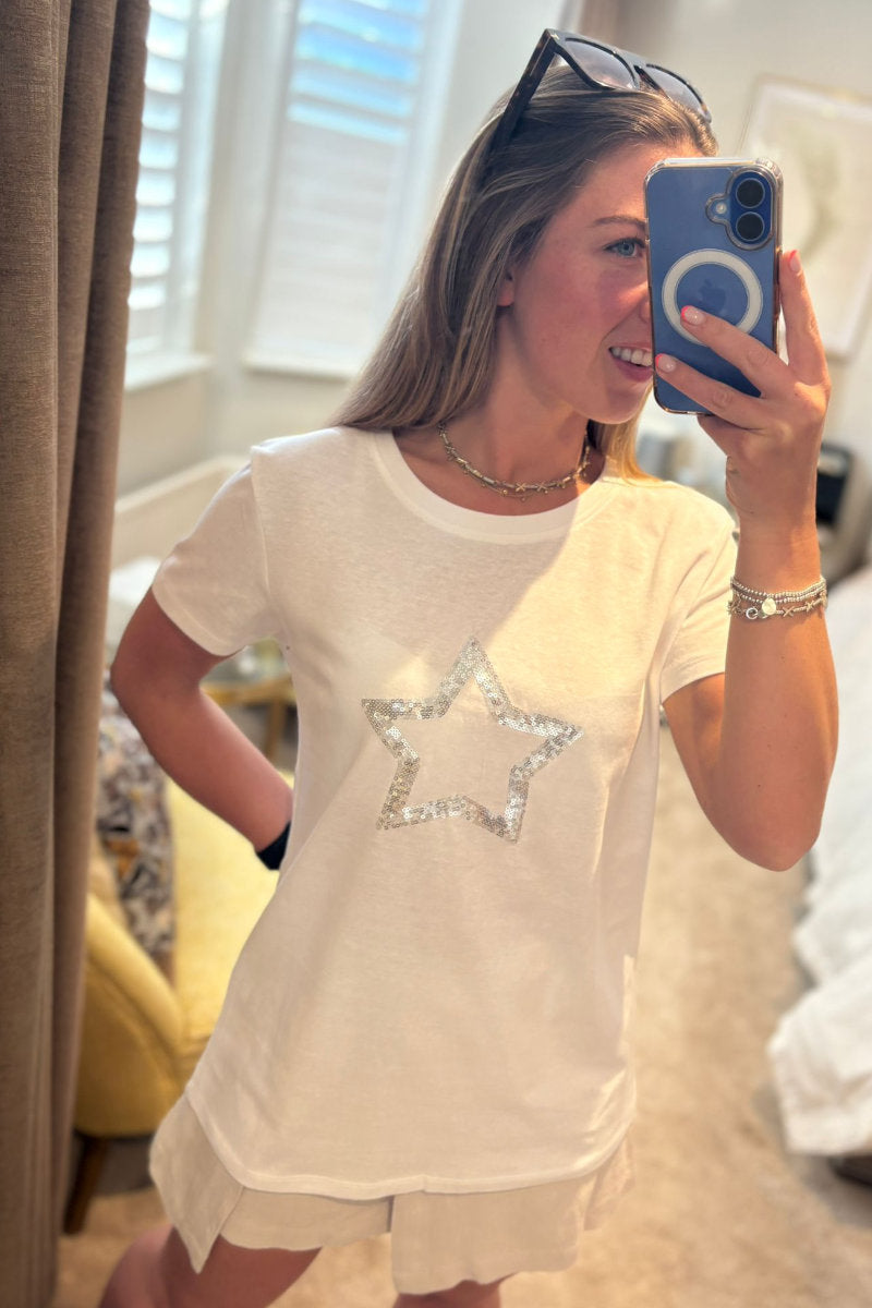 Add a little sparkle to your everyday style with the Paramour Sequin Star T-Shirt. A fresh twist on a classic silhouette, this piece is perfect for those who love relaxed comfort with a hint of shine.